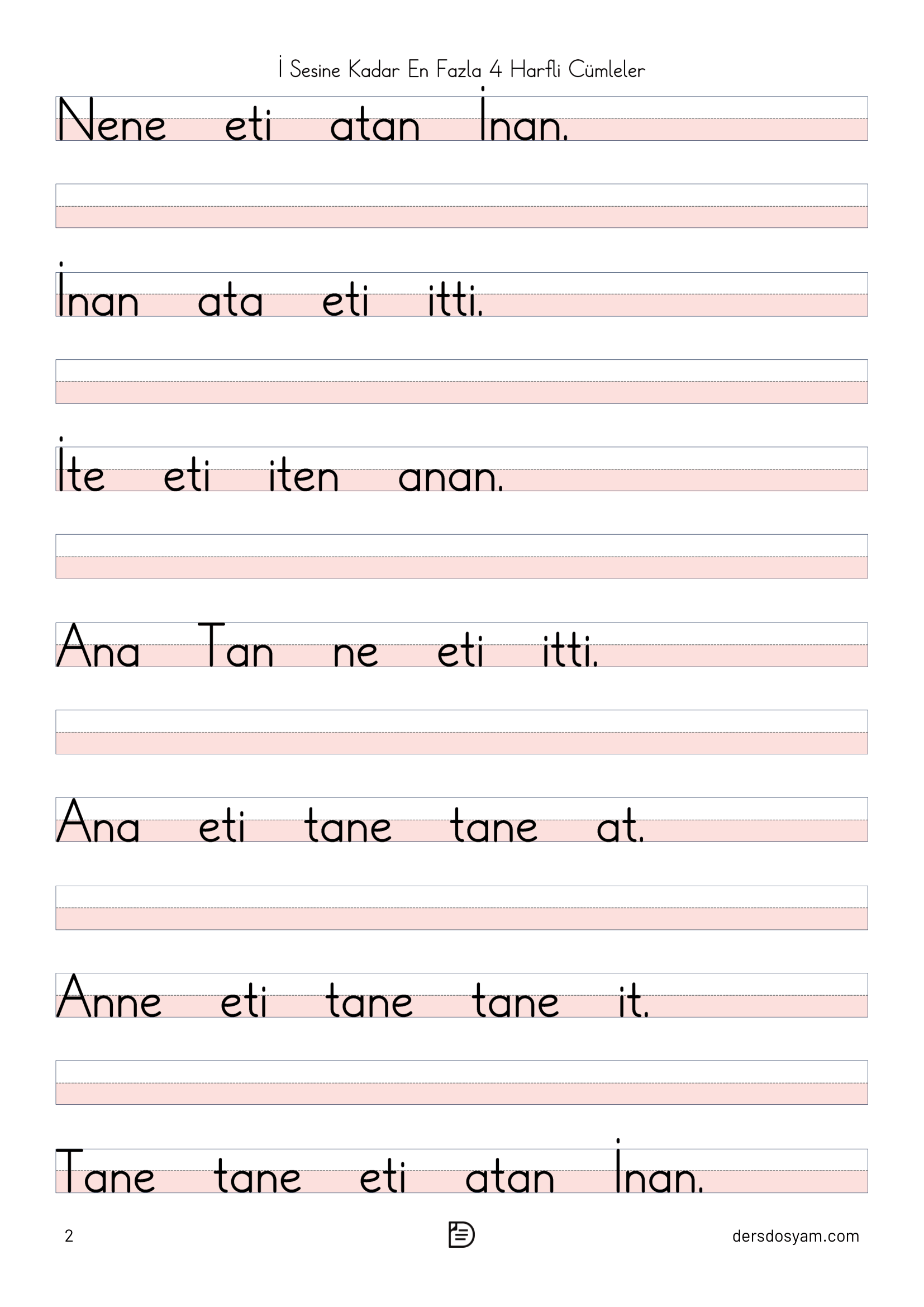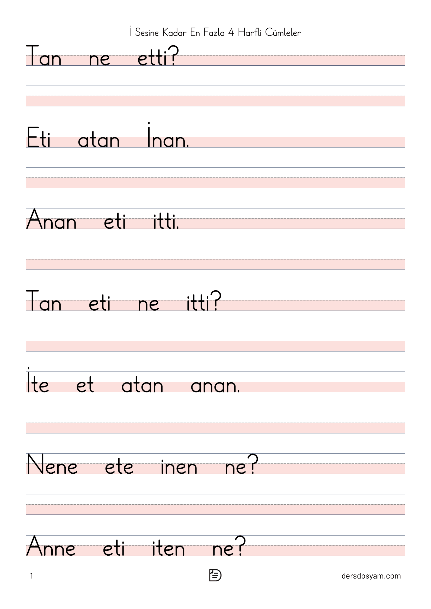 Bu çalışma kağıdında öğrencilerin okuma sürecini kolaylaştırmak amacıyla yalnızca en fazla 4 harfli kelimelerden oluşan cümleler kullanılmıştır. Tüm cümlelerde "i, İ" sesi yer almakta ve öğrencilerin hedef sesi fark ederek okuma yapmaları desteklenmektedir.