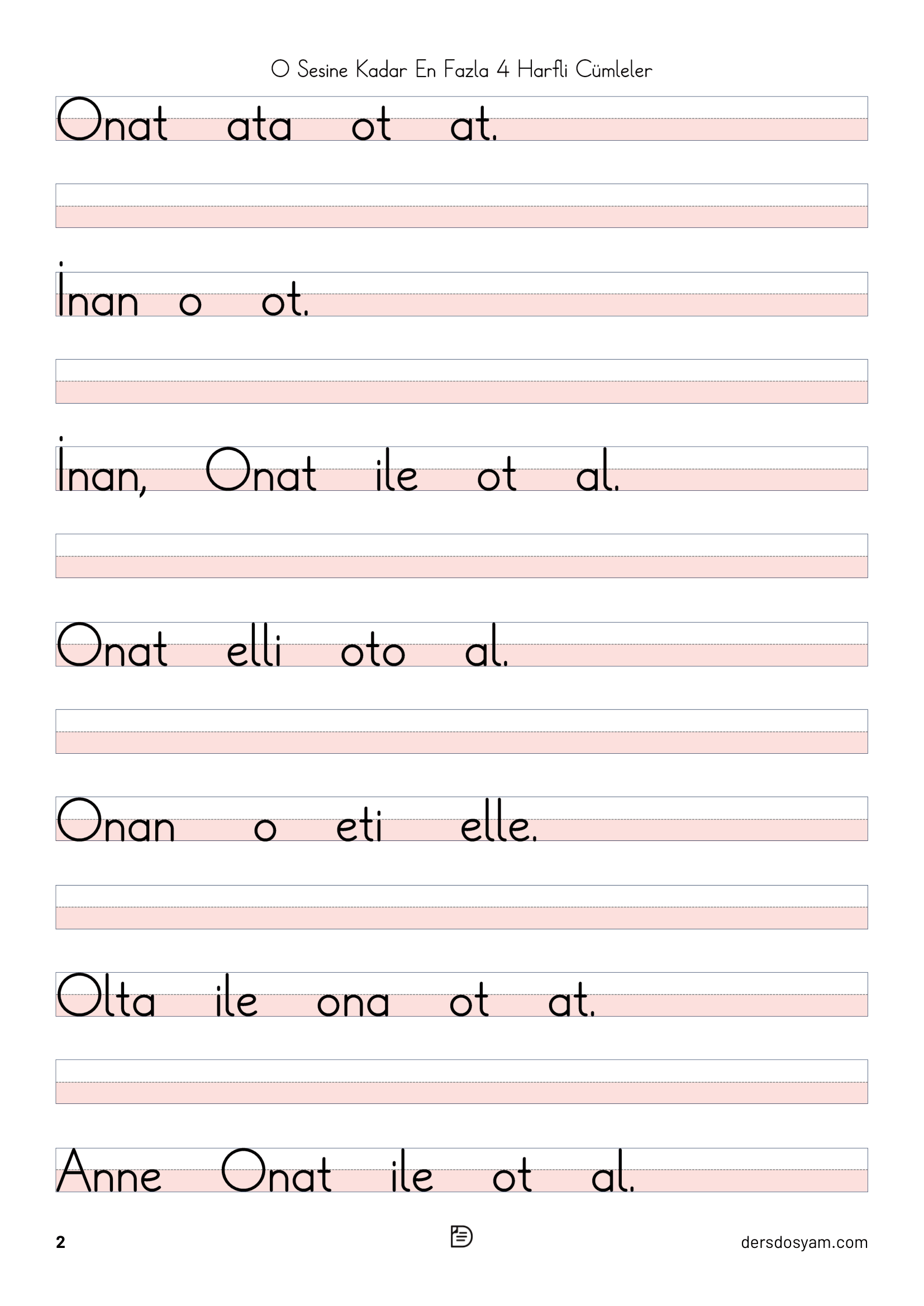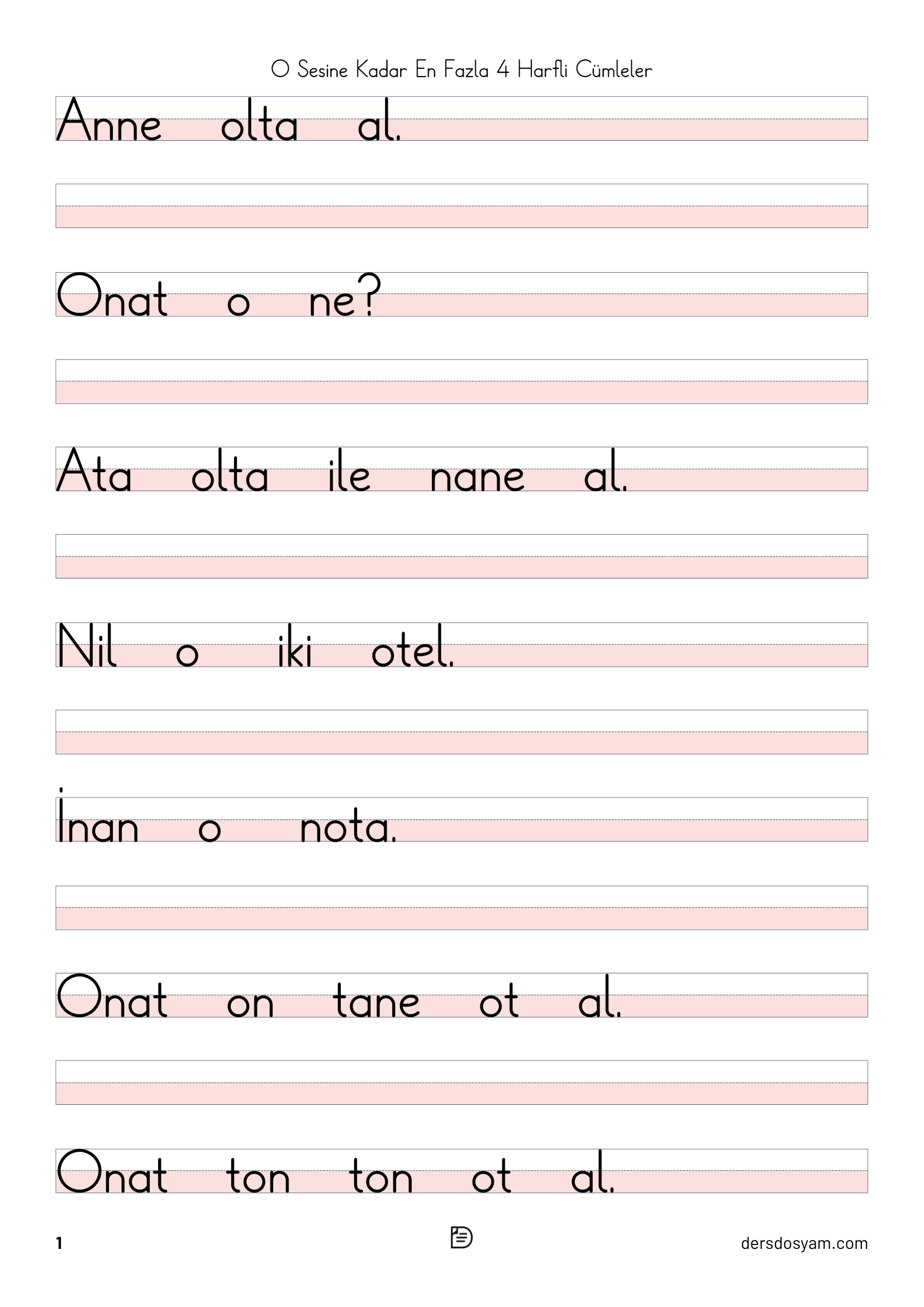 Bu çalışma kağıdında öğrencilerin okuma sürecini kolaylaştırmak amacıyla yalnızca en fazla 4 harfli kelimelerden oluşan cümleler kullanılmıştır. Tüm cümlelerde "o, O" sesi yer almakta ve öğrencilerin hedef sesi fark ederek okuma yapmaları desteklenmektedir.